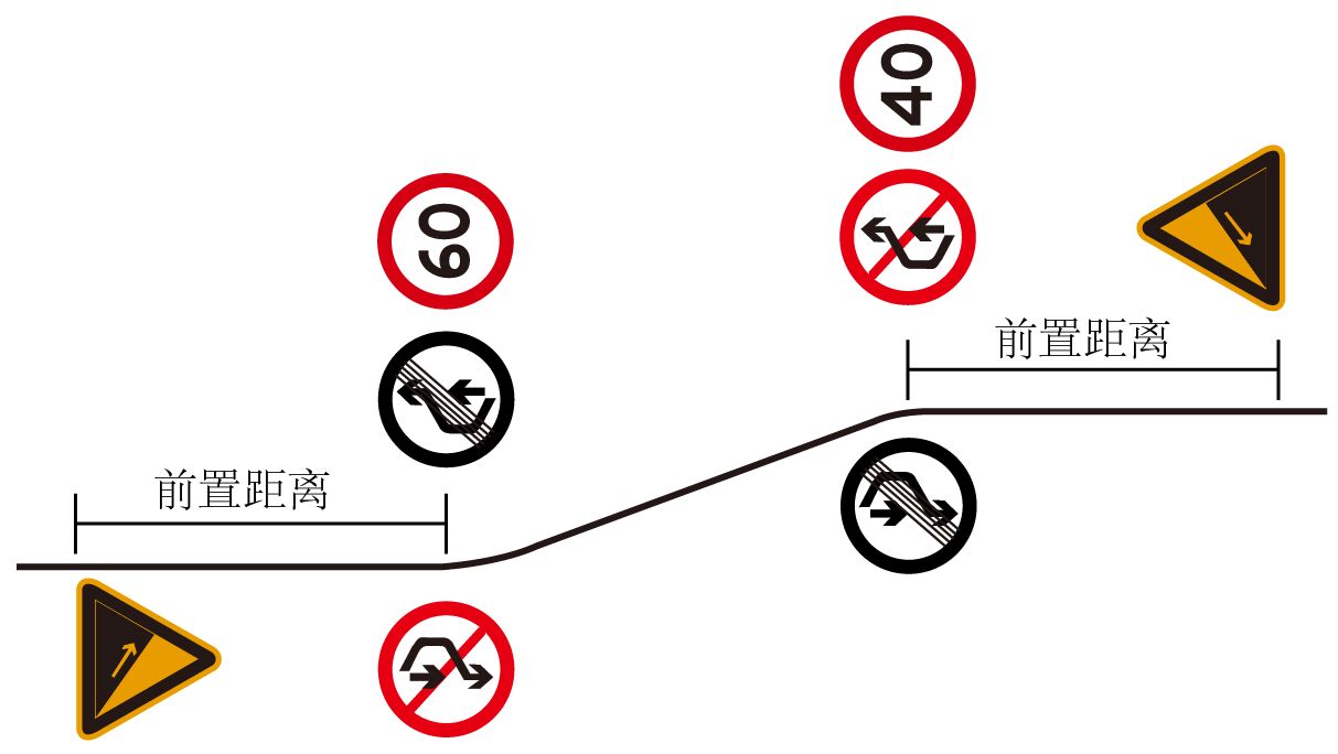 2、上、下陡坡路段起點應(yīng)設(shè)置禁止超車標(biāo)志,終點設(shè)置解除禁止超車標(biāo)志。