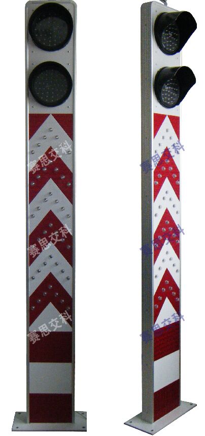 2、基本說明:一體式柱體結(jié)構(gòu),標(biāo)志版面圖案中設(shè)置紅滿屏燈、紅滿屏燈,交替閃爍,柱體上設(shè)置警示發(fā)光管,采用太陽能蓄電池供電,設(shè)置于危險(xiǎn)路段分道、高架匝道上下口等。
