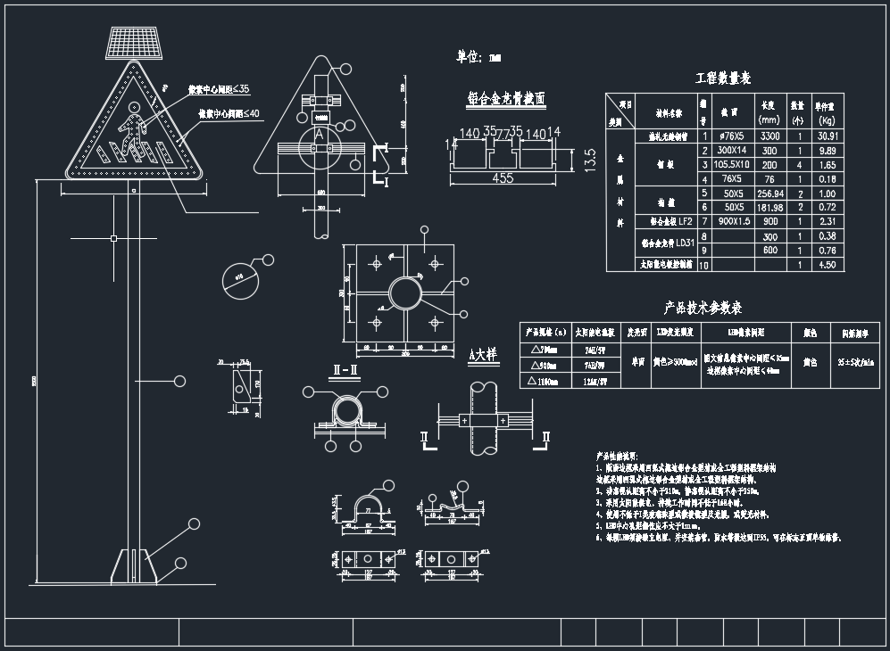 各種類型主動發光標志大樣圖集 2020年7月1日 0 條評論 2.72k 次閱讀 0 人點贊 (一)太陽能點陣發光標志 (二)隧道吊頂發光標志 (三)線型誘導發光標志 (四)懸臂類面板顯示型發光標志 因網頁篇幅有限,無法盡列,若需要,可來電索取CAD版本。 咨詢交流熱線:陳經理? 13776419300 推薦閱讀: LED主動發光道路交通標志在縱坡交通安全設計中的應用 (一)縱坡定義 1、平面交叉口進口道的縱坡坡度值,宜≦2.5%,困難情況下不宜大于3%。 2、當縱坡坡度值大于下表規定值時,應當設置“上/下陡坡標志”;當縱坡坡度值小于下表規定值時,對于經常發生制動失效事故的下坡路段,也可根據現場條件設置“... 主動發光標志圖鑒(二) (七)主動發光標志的晝夜拉鏈 主題:主動發光標志在白天和夜晚能自動切換發光模式 (八)主動發光標志的根型技術結構 主題:支撐發光標志工藝、功能的各種隱形技術 (九)尋找光明 主題:在夜晚城市交通中,彌漫著各種光源,對駕駛人而言,最重要的發光... led內置主動發光標志應該安裝在哪里? 在現在的交通形式之下,我們只有正確的安裝led內置主動發光標志才能夠有效的保障道路上面的行人車輛的安全,我們只有充分的利用好這些led內置主動發光標志就可以維持一個很好的交通秩序。那么問題來啦,led內置主動發光標志是有了,我們該將其安裝在... 地埋自發光標志牌安裝流程和安全準則 走在城市的各條道路上我們看到最多的交通設施一定是地埋自發光標志牌無論是禁止地埋自發光標志牌警示地埋自發光標志牌還是地埋自發光標志牌。它們都對維護道路交通的順暢起到關鍵作用。 地埋自發光標志牌作為重要的交通設施,可以引導人們行駛規范,和指引人... 懸臂式半透發光標志的安裝、接電細節說明 (一)基本說明 1、安裝前請班組經理務必仔細閱讀本《安裝說明》文件,紙質文件隨貨附帶兩份。并留意查看標志側面對應版面標簽、控制機箱標簽、所有類型抱箍、螺桿、U型卡箍等。 2、若安裝量較大時,應提前告知我廠安裝計劃,我們在上貨時按照標志安裝先... 如何劃分景區雙面太陽能標志牌的類別? 大家到景區游玩,肯定會留意到很多不同形狀和顏色的雙面太陽能標志牌,一般這些景區雙面太陽能標志牌不僅包含常見的文字信息,也融入了景區獨有的文化特色。其實景區雙面太陽能標志牌也可以按不同功能作用進行分類,今天專業生產雙面太陽能標志牌的廠家小編就... 主動發光標志設計 發光標志大樣圖 發光標志結構設計 發光標志設計圖 ? 著作權歸作者所有 賽思交科 南京賽思交通信息科技有限公司 點贊 文章評論(0) 取消