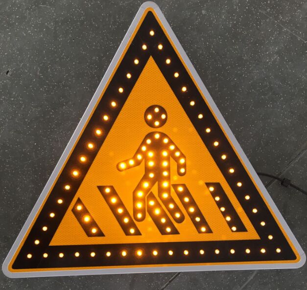 (三)LED調光。主動發光標志,是一種將交通語言信息亮化成像的交通標志,其中外置LED點陣發光標志,是通過LED發光點陣將交通標志版面中的關鍵信息勾勒出來,實現主動發光的效果,所以標志版面中成型的LED點陣的光學視覺效果在整體工藝制造中占據著重要地位。出廠時,應當測試單顆LED發管的亮度值,通過串入電阻,來調節電流值,以控制發光亮度值,實現標志的視覺舒適性,同時還應注意單個版面各同色LED管的亮度值保持一致性,并保留測試數據。同版面中,不同燈色的LED發光管,在相同工作電流值下,其亮度值是存在一定差異,其中白色最亮,應當提高深色LED管的工作電流值,來補平其與白色燈的視覺亮度。