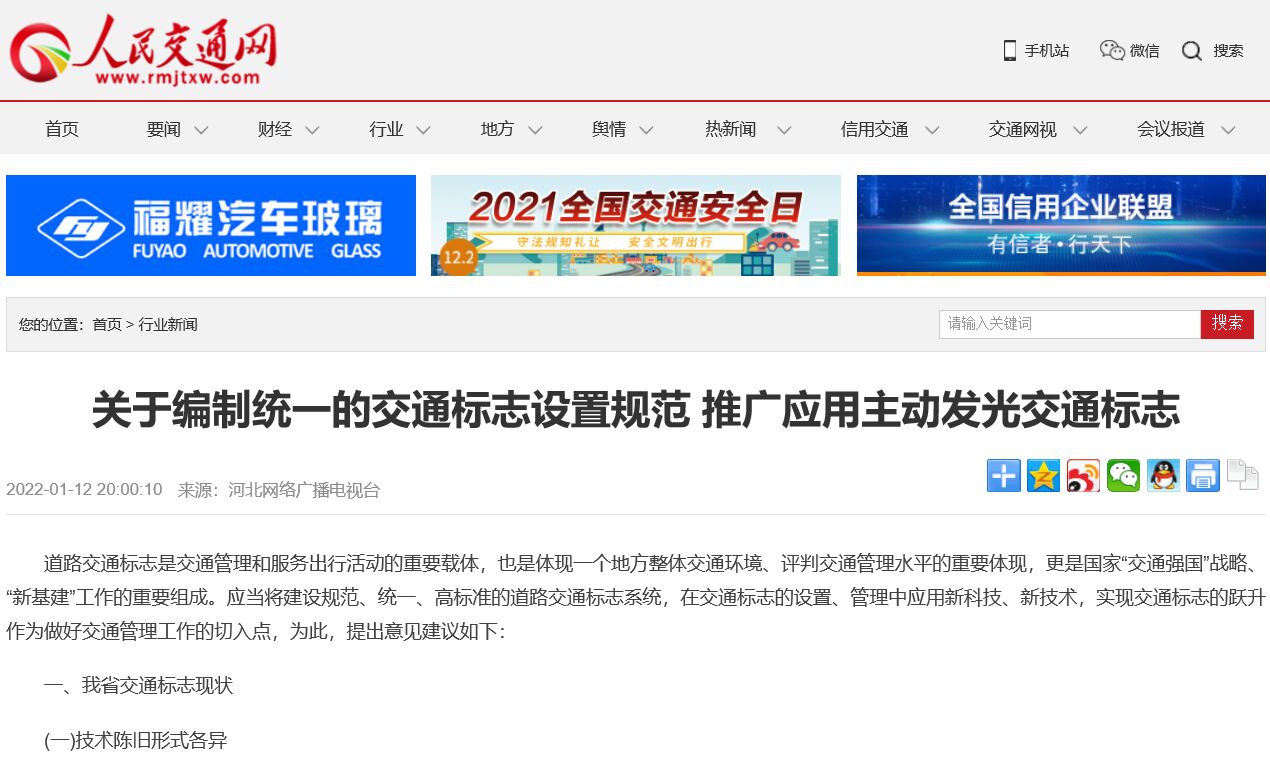 附件:“人民交通網(wǎng)”2022年1月12日發(fā)文《關(guān)于編制統(tǒng)一的交通標(biāo)志設(shè)置規(guī)范 推廣應(yīng)用主動發(fā)光交通標(biāo)志》截圖。