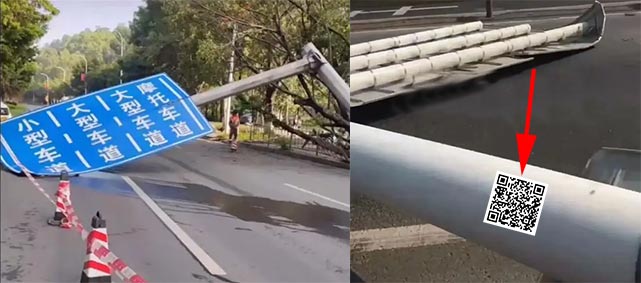 倒塌的交通設(shè)施可以通過二維碼及時(shí)反饋問題