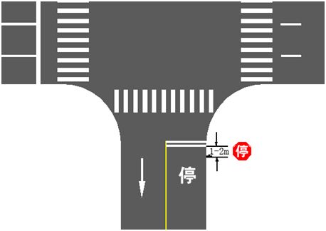 5、停車讓行標志一般設置在交叉口需要車輛停車的停止線前1~2m處,并不妨礙交叉口通視三角區視距。