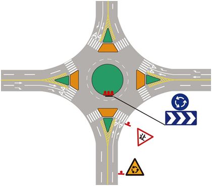 3、環形交叉口,入環車輛需要讓行環內車輛時,應設置減速讓行標志。