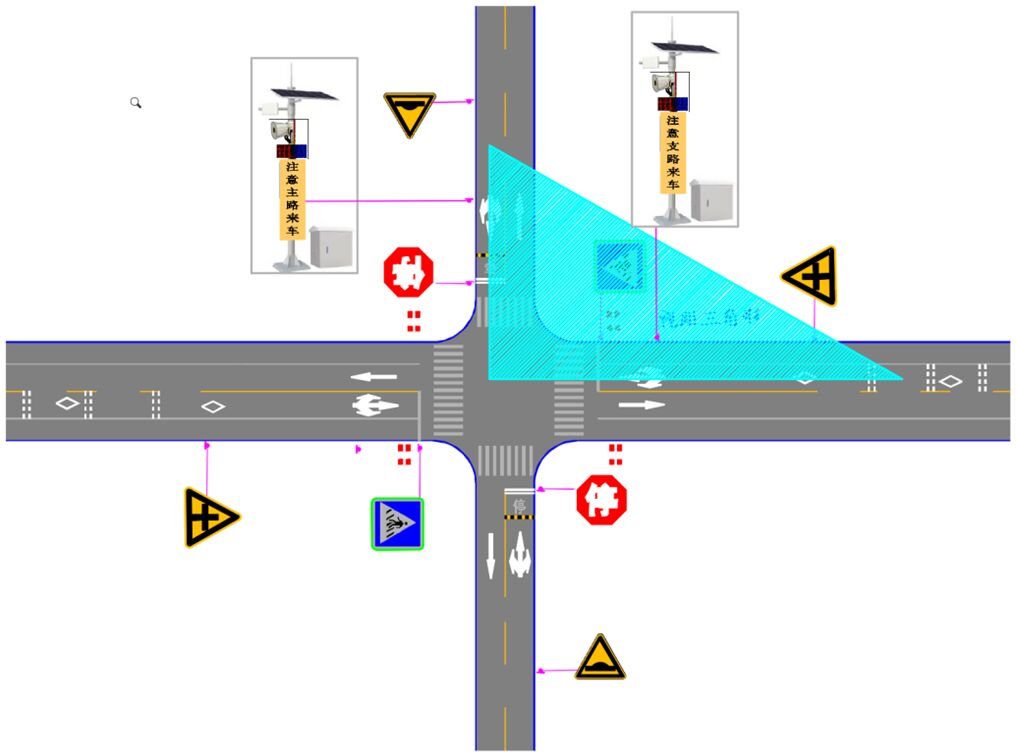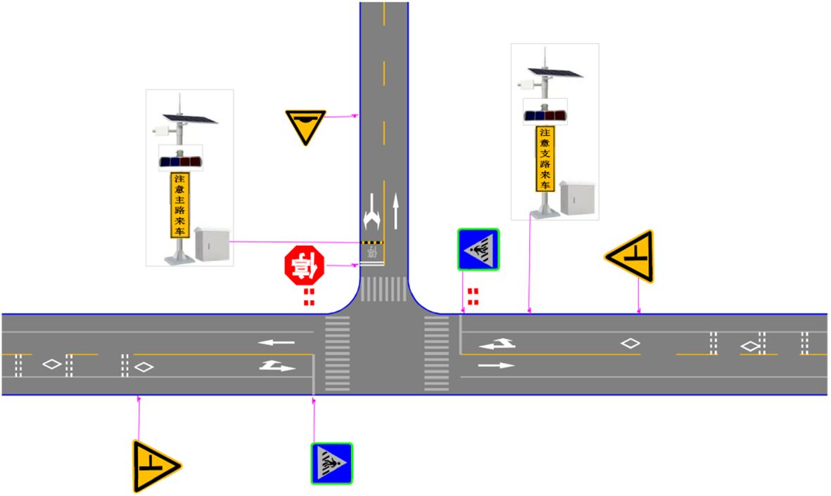 A)支線上設(shè)置減速讓行、或停車讓行標(biāo)志,有條件可采用太陽能主動發(fā)光標(biāo)志,或于標(biāo)志上方配置太陽能爆閃警示燈。