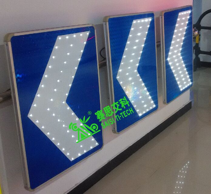 在隧道內路段,電光標志能彌補因光線幽暗而導致的人眼視認障礙;在小半徑彎道路段,電光彎道誘導標志能清晰的表現出車道的線型輪廓,克服了普通標志因車輛燈光照射寬度不足而導致無法顯現的弊端;在霧霾、團霧等氣象災害的行車環境中,電光標志能通過規則頻率的閃爍,加強危險因素的警示效果,彌補普通標志靜態、單一的顯現。同時,隨著數字通訊技術的嫁接應用,電光標志能實現實時交通信息的聯動,特別是對于非燈控的小支路口,突然出現的交通參與者,能實時向主干司機傳遞信息。