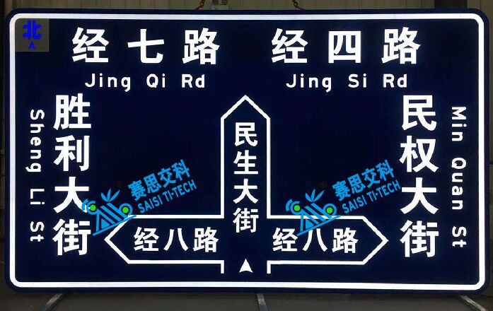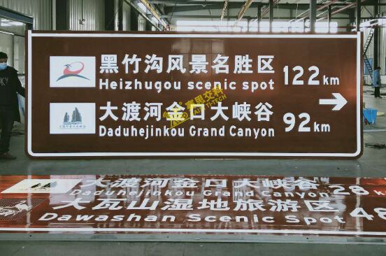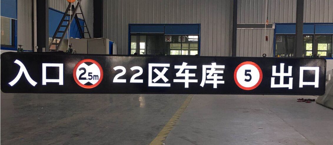 全透明半透明發光標志牌的款式選擇,依據不同標志版面類型而定,通常指示類標志、指路類標志、旅游類標志等,因其關鍵信息中的文字、字符、圖案為白色反光膜,透光效果明顯,故常采用半透明發光標志牌;禁令類標志、警告類標志等,因其關鍵信息中的文字、字符、圖案為深色系反光膜,相較于白色反光膜,其透光率較低,甚至不能透光(如黑色),故只能采用全透明發光標志牌,通過底膜的透光,來反襯標志信息的顯現。