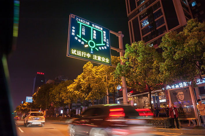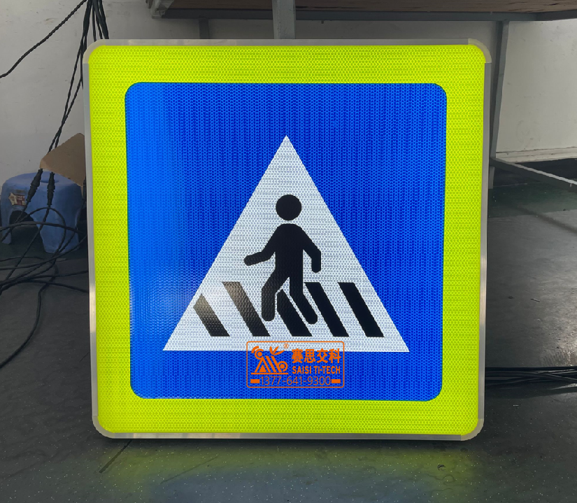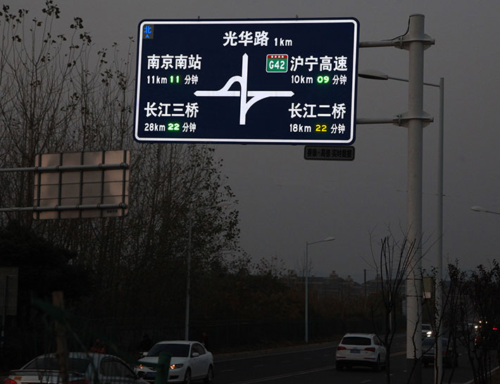 “全透明半透明發光標志牌”,是一款常見的主動發光標志牌,其標志面板層鏤空附著全透明或半透明材質,實現標志內部光源的外向透射,在標志面板上呈現信息成像,增強標志的清晰視認效果,提升駕駛人在區域交通環境中的駕駛體驗感。
