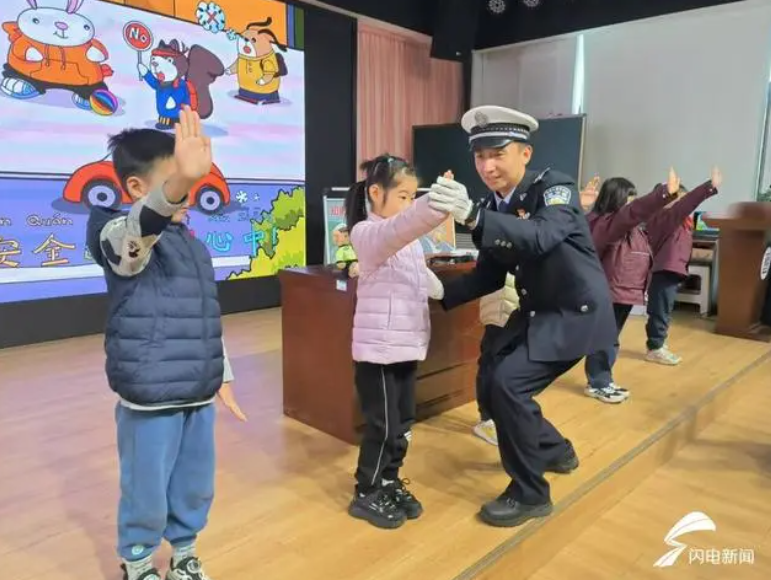 “交警手勢(shì),有模有樣。”民警進(jìn)入課堂,為同學(xué)們展示交警指揮手勢(shì)。耐心糾正動(dòng)作,同學(xué)們化身“小交警”,學(xué)得有模有樣,一招一式頗有交警風(fēng)采。