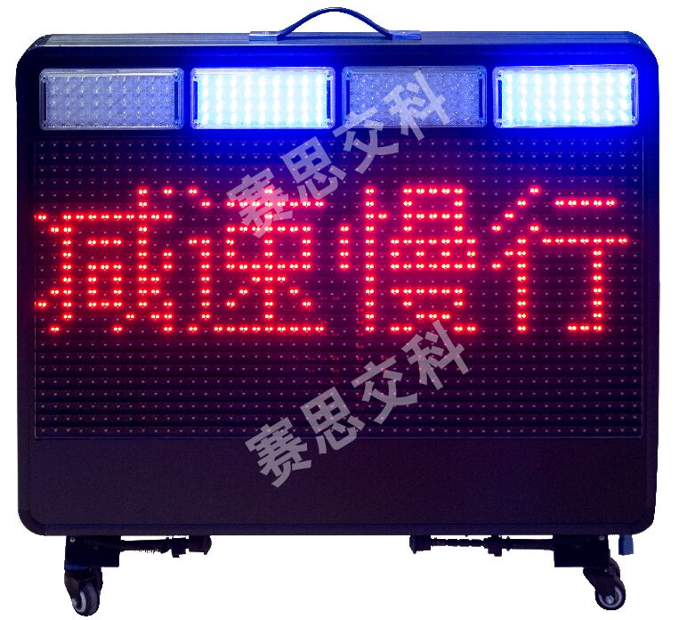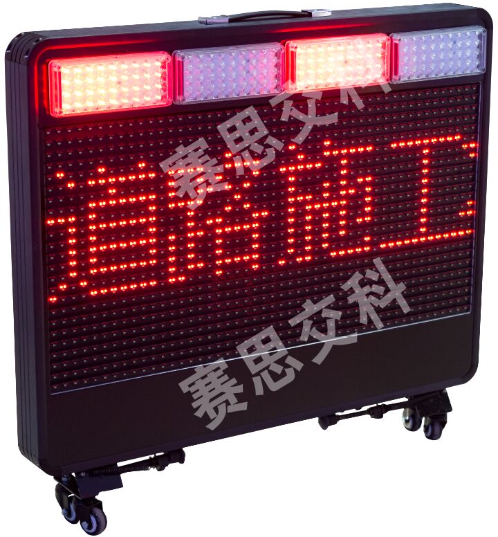 2、警示屏正面、背面各鑲嵌2組紅藍爆閃警示燈,交替閃爍。