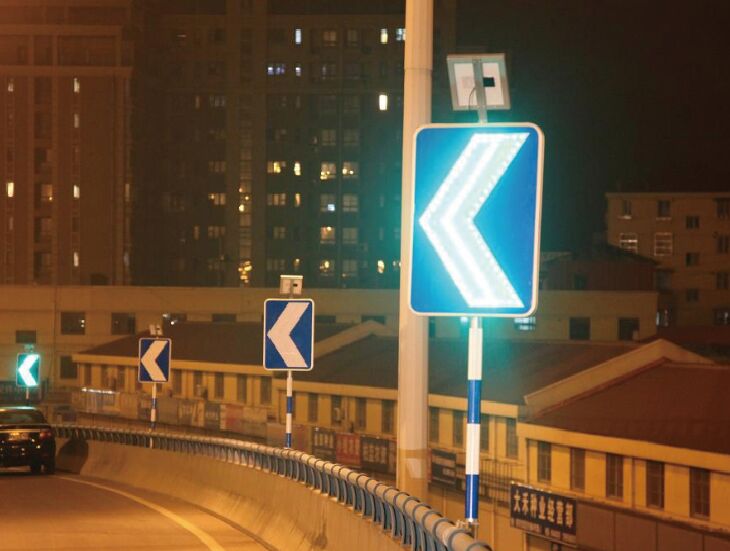 傳統彎道誘導標志采用逆反射型標志,標志自身不能發光,需借助外部光源照射,經逆反射后標志才能被看清,其存在以下問題: