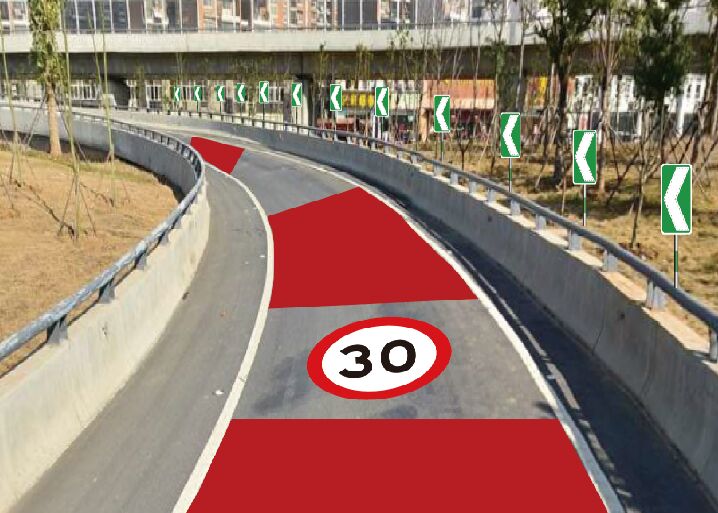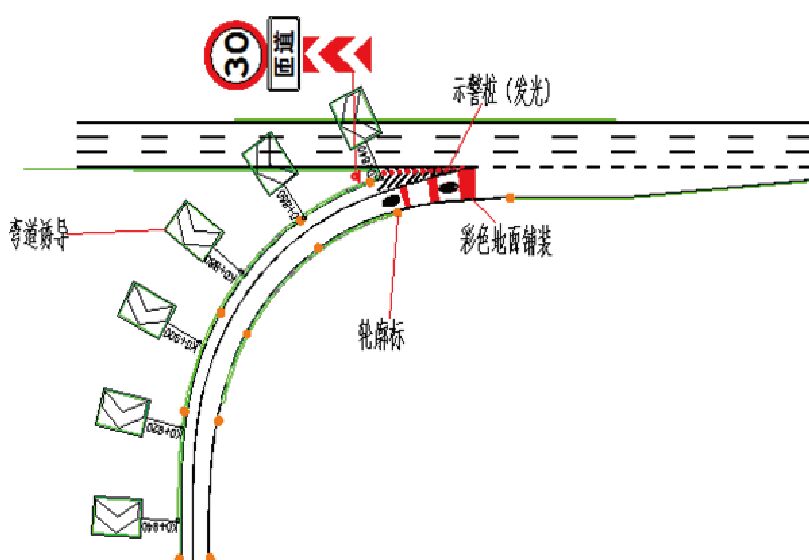 (4)快速路出口小半徑彎道:快速路主線出口或立交轉彎半徑較小