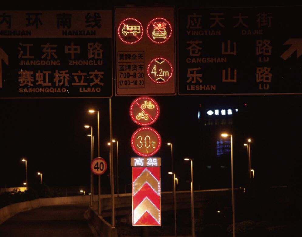 1、在彎道處設置點陣主動發光彎道誘導標志,采用太陽能供電,無需外接市政電源,通過LED動態“追逐式”閃爍,有效指示道路線形變化動態軌跡、保障車輛在彎道行駛的安全性。標志采用自動光控技術,不僅具備普通標志的逆反射功能,同時,在雨霧霾等惡劣天氣狀況下也具有良好的穿透性,能被遠距離視認,降低了曲線路段視認性不足所帶來的安全隱患;逆光條件下,強烈陽光照射使人難以看清標志信息內容,易造成交通事故,主動發光彎道誘導標志起到正面補光的作用,同時,標志美觀、方便安裝維修。