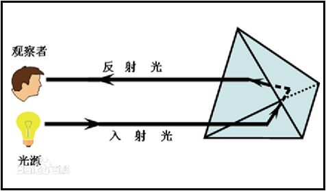 讓一束入射光線從正面照射在反光材料上,經內部折射,再反向穿透反光材料,沿入射光平行的方向反射回來,讓在一定觀察區域內的觀察者捕捉到反射光,又稱“回歸反射”,屬于被動光源范疇。