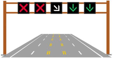 (4)潮汐車道入口處應有明顯標線,設置物理隔離設施、可變信息板或信號燈,明確指示各車道